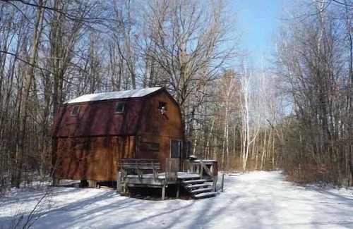 Cozy cabin on the Pine river. Great for fishing and paddle sports. On 40 acres of beautiful forest. Electricity and running water. Bathroom with Shower. Full Kitchen. Central Michigan-easy access from everywhere. Casino, Water Park, Lakes, Watersports, Paddle sports, hiking,foraging,camping,firering, on the river,fishing,.