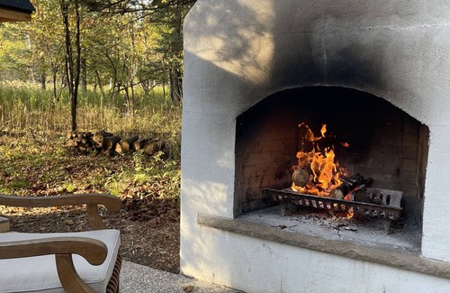 This beautiful bungalow is nestled on 5 acres with 1000 feet of frontage on the Boardman River surrounded by hundreds of acres state land. Kayaks provided for your enjoyment. Trails for biking, hiking, and even horseback riding all near by. All this serenity and yet only 20 minutes to Traverse City and all the areas that Northern Michigan has to offer. Play all day and come home to the hot tub and outdoor fireplace and living area to relax.