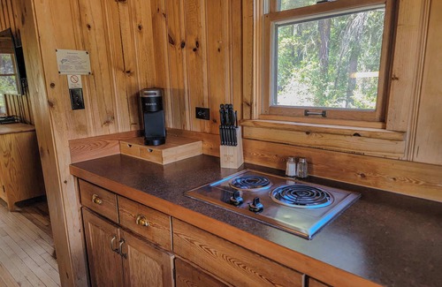 The cabin sleeps two adults, an additional infant or child under 4 is also welcome (you would need to make your own sleeping arrangements e.g. bring a pack and play, or co-sleep).