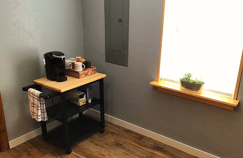 The cabin sits on top of a hill, on a half acre yard surrounded by woods and fields. Horses swish their tails and cows munch the grass while the birds sing in the treetops. The cabin has 3 bedrooms (2 queen beds and 2 twin beds) and two bathrooms. There’s a large living room, kitchen, and laundry available. There’s a private 7x20 back porch off the master bedroom and a large 8x48 front porch that has plenty of sitting space.