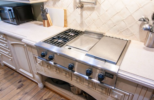 We do have a gas stovetop with griddle, gas grill outdoors, microwave and crockpot, and toaster for your cooking needs as well.