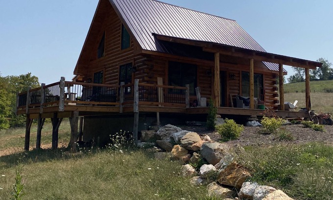 Cabin on the Rocks is a newly built log cabin situated on a beautiful hillside overlooking Burks Fork Creek.. Enjoy sitting on the wrap around porch or visiting the nearby attractions on the Blue Ridge Parkway. This private cabin has 3 bedrooms and a loft and sleeps 8 comfortably. It is located on our farm and guests only have access to the cabin, not other buildings on the property. If you're looking to host larger groups, we also have Creekside Cabin located on the same road.