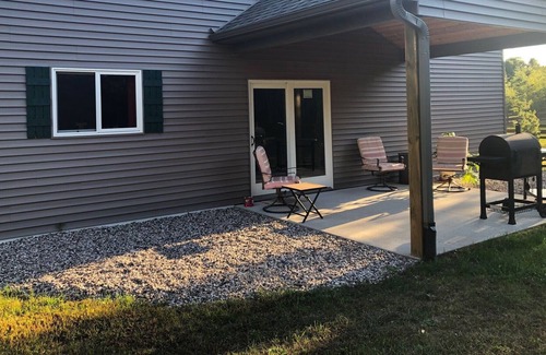 Cabin on ATV, UTV, Snowmobile trail near Athelstane. Newer construction, fully furnished 2 king bedrooms with queen futon in living room. Six person guest limit. All new rustic furnishings. Kitchen : refrigerator w/ice maker, range, microwave. 1 full bath includes washer & dryer. Indoor wood fireplace. In-floor heat, air conditioning. 20x20 outdoor firepit, charcoal grill smoker on patio. Firepit and indoor fireplace includes first load of wood. Additional wood available for sale.