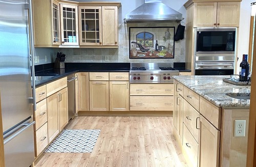 Come relax in our beautiful forest cabin nestled in the Bitterroot Mountains while enjoying the views of the Bitterroot Valley and Sapphire Mountains. This home is spacious with three floors to accommodate 10 people. Beautiful windows throughout the entire property allows for the scenery to be right at your fingertips. The main floor has a large kitchen perfect for entertaining guests and connected to the back patio for extended living and dining space. The oversized living room has vaulted ceilings with windows to showcase the stunning views. The Master bedroom has a king sized bed that offers views throughout the French doors to the back patio. The master ensuite bathroom is large and multi-functional with a jetted tub or walk-in shower. The large butler pantry connected to the kitchen houses the washer and dryer for easy main floor access across from the powder bathroom.