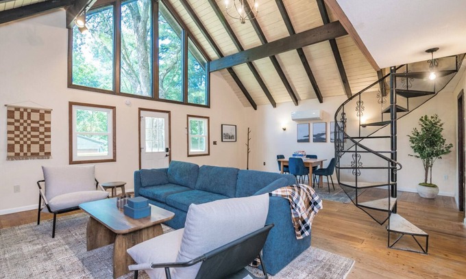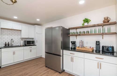 This two story house has a stunning high ceiling in the living area, which is open to the newly renovated kitchen. Queen bed in lower bedroom. King bed in upper bedroom. TV in living room and each bedroom.
