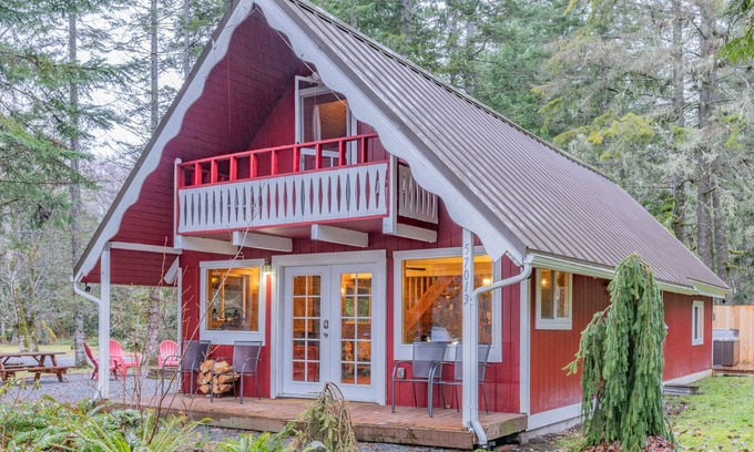 Discover The Red Chalet – a family and pet-friendly retreat near Mount Rainier National Park. Enjoy seclusion, a private hot tub, and easy access to year-round outdoor adventures. Located across from the Nisqually River trailhead, you're just a short drive from Gifford Pinchot Forest, art galleries, and restaurants in Ashford, WA. Book now for a serene family getaway surrounded by nature's wonders!