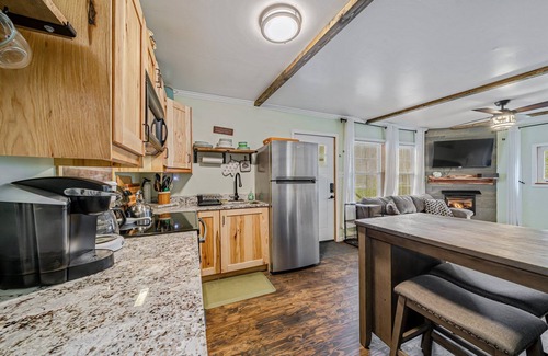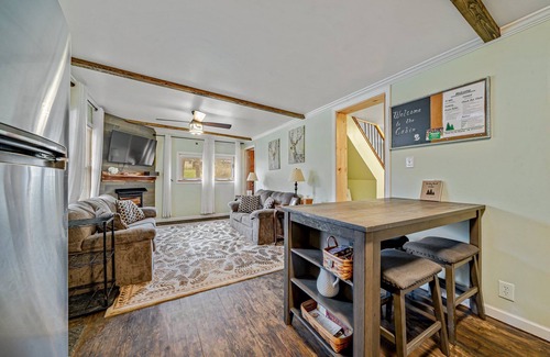This Renovated cabin features 3 bedrooms and 2 bathrooms with excellent outdoor spaces which include a large back patio with a hot tub, a large covered front porch, and a fire pit area. The second floor was designed as a large bunk room perfect for kids or small groups. The cabin does have high-speed internet for those looking to work remotely or for streaming.