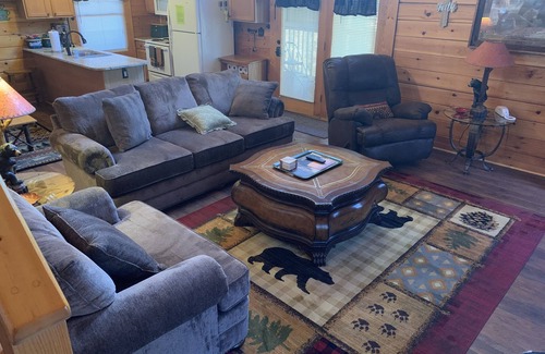 Beautifully manicured cabin in the hideaway of Eagle Springs Resort! Pristine clean & beautifully detailed describes this cabin. In addition, our cabin is maintained with an additional service to prevent bed bugs from ever being part of your experience. The cost on our part is worth it to us, to make sure your experience is incredible! Fair Bear Den is a mountain experience without the scary switchbacks & narrow roads. New to the rental program making it fresh & up-to-date with all of the amenities & more! Beautiful new granite in the kitchen & new flooring in the living room, dining room, kitchen, hallway & both bathrooms gives it that extra clean feel!! There is a hot tub! Please bring a hot tub towel for each guest. The cabin provides each guest a bath towel, hand towel and wash rag.