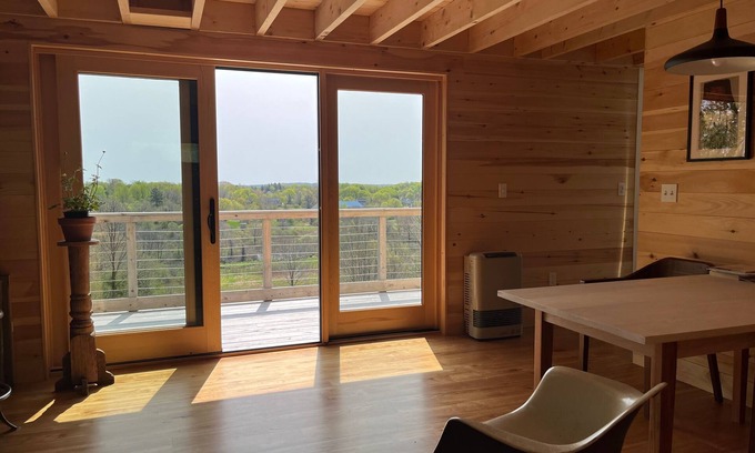 Approx 650sf, this newly constructed cabin feels cozy and provides nothing more or less than you need. Perfectly sited to maximize a southerly view, overlooking meadow and countryscape. 5 minutes to town. Large deck provides privacy and daily southern breezes. Available for monthly rentals only.