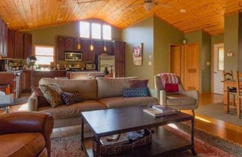 Beautiful, open layout cabin in the community of Lost River. Two bedrooms, each with its own bath, and fast, fiber-optic internet. Sit out on the deck that surrounds the entire house and you can see the stars at night, or maybe even hear the baby goats bleating from the farm across the way.