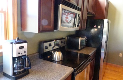 We love to cook, and you can tell it. The kitchen has high quality, sharp knives, quality cookware, and everything you might need to make a great meal.
