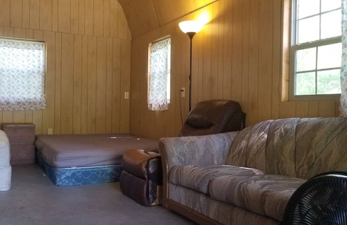 Cabin Z is a rustic camping cabin; there is electricity and heat, but no plumbing. Cabin Z is not secluded, it is situated across the main driveway to the lodge house. It is our most spacious cabin, has WiFi, a microwave, refrigerator, electricity and heat. It has a fire pit, picnic table, and parking, and table top propane stoves or charcoal grills are available upon request at no extra charge. The stove uses the (approximately) 1 lb propane cylinders that are readily available, and we sell them as well.