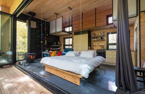 Cabin Zoobox 62 is located in Eastman, just 12 miles from Marais de la Riviere aux Cerises and 24 miles from Club de Golf du Vieux Village. This vacation home provides a garden. Université de Sherbrooke Stadium is 28 miles away and Palace de Granby is 29 miles from the vacation home. Providing a patio and lake views, the vacation home includes 1 bedroom, a living room, TV, an equipped kitchen, and 1 bathroom with a bath. The accommodation has a fireplace. Montréal/Saint-Hubert Airport is 67 miles away.
