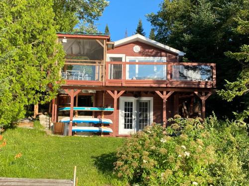 13 miles from Mont Saint Sauveur Parc Aquatique in Saint Adolphe D'Howard, Cabines Niksen features accommodations with access to a hot tub and spa facilities. This beachfront property offers access to a terrace, free private parking, and free Wifi. Guests can use a garden. The air-conditioned chalet consists of 1 bedroom, a living room, a fully equipped kitchen with an oven and a coffee machine, and 1 bathroom with a shower and a hair dryer. Guests can take in the views of the mountain from the balcony, which also has outdoor furniture. There's also a seating area and a fireplace. There is an on-site coffee shop, and during warmer months you can make use of the barbecue facilities. Guests at the chalet will be able to enjoy activities in and around Saint Adolphe D'Howard, like canoeing and walking tours. Skiing and cycling can be enjoyed nearby, while a ski equipment rental service, a private beach area and water sports facilities, are also available on-site. Sommet Saint Sauveur is 13 miles from Cabines Niksen. Montreal-Trudeau International Airport is 53 miles from the property.