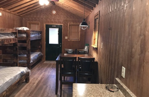 Fishing Cabins and boat docking. Twelve individual cabins, each sleep four. Kitchenette,coffee pot, microwave, cooktop. Four bunks, stand up shower, table and chairs, sitting area, flat screen TV with basic cable. Towels, linens, dishes, utensils, cooking utensils provided. BBQ pit. Large covered dock with fish cleaning tables, picnic tables, swings, benches. Fishing,duck hunting, & alligator hunting guides available.