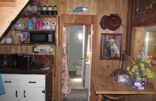 I have put a few years in building my little get away, for family and friends, and this year I have decided to open it to the public to rent, first thing i want to mention is I hand cut every board , beam and plank myself, other then the floor which were boards over 125 yrs. old that came from a homestead cabin near here, I actually have 2 cabins, one is the main living cabin and the other i call Bunkouse #1 which has 2 sets of bunkbeds for extra sleeping and storage space, there is a small loft with one full size bed and a small set of drawers, it is confy with the short ceiling, but the view out to the North is amazing, you can see out to the end of the property where the rivers are and also Mt. Rainier in the distance, also the couch in living space is a hide a bed, The cabin is completely off the grid, I will meet with you at the property to go over a few things to know all pretty basic but power is provided with solar panels, but if battery cells run low there is a back up power inverter, which can be started remotely from inside the cabin or outside, as the picture shows I have a porta potty, but just recently added a full bathroom with a inside toilet! , the property is completely fenced in for pets and small children don't get lost, there is a trailhead at the back of yard in the pic, this leads you to the edge of a active beaver pond, and to walk the trail to the river, which is where the North Fork and South fork join and is the border of my east end of my property, you will have to cross the beaver dam then about 1/8 mile to the river, which is normally crystal clear and very warm in the summer, and is only about a 10 min. easy hike out to the river, there is a lot of hiking area around my property I am almost surrounded by Washington State Dept of Fish and Wildlife property. the cabin is heated by propane which i provide also, as well as the water heater for the shower, which there is a small shower room in the cabin with a shower and sink, pots and pans, silverware, cups are provided, firewood for the campfire is also provided, I have a nice color tv with DVD player with many, many DVDs, all family approved, my cabin located 60 miles north of Portland in the small community of Toutle where my family history goes back 130 yrs. there is a small general store 1/2 mile from the cabin, Silver Lake, which in my opinion is one of the most beautiful lakes in the state, and is excellent fishing and watersports and the main resort is approx 2 miles from the cabin, also the cabin is just off of hwy504 better known as mt. St. Helens hwy, which has lots to do for visitors, from hiking, fishing and 2 different centers, Seaquest state park is also only about 5 minutes away, Long Beach Península and Ilwaco wa. on the pacific ocean are only about 1.5 hours away. There is a lot to do and besides giving you info on off grid living, I can also let you know when and where to go see a herd of wild horses which the herd has been in the area for over 100 years, and is only 5 minutes away where they come out in the afternoons, early in the mornings are the best time to see the beaver, from the edge of the yard down the bank to there pond, also we have a lot of deer come thru, I have seen otters in the river playing and also there are a few Bald Eagles nest in nearby, in the one pic is my grandkids playing in the river when a eagle flies right over them to catch a fish. Just added a new picture the horses are part of the wild Toutle horse herd, who have been free to roam in the near area for approx. 140 years, first set free by local homesteaders who released to the wild when no longer needed, the now are taken care of by local horseman/woman who feed them in the winter, for my guest I will draw an easy map to go see where they come nearly every evening at dusk and it is only 5 minutes from cabin/