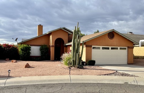 POOL HEAT AVAILABLE! Peaceful quiet setting on a cul-de-sac in Phoenix AZ with thoughtful furnishings and amenities. Cozy back yard is great for entertaining with patio table, grill, fire pit, and heated pool. Located near the 101 freeway it has easy access to North Scottsdale and 30 mins to Cave Creek AZ. The Mayo Clinic is minutes away and the TPC Scottsdale golf course is 15 mins away via the 101 fwy. In close proximity to shopping, restaurants and golf courses. The garage has been made into a gaming area with pool table, table tennis, dart board, and corn hole boards. We think the quiet surroundings and thoughtful furnishings will make this home a great place for family and friends.