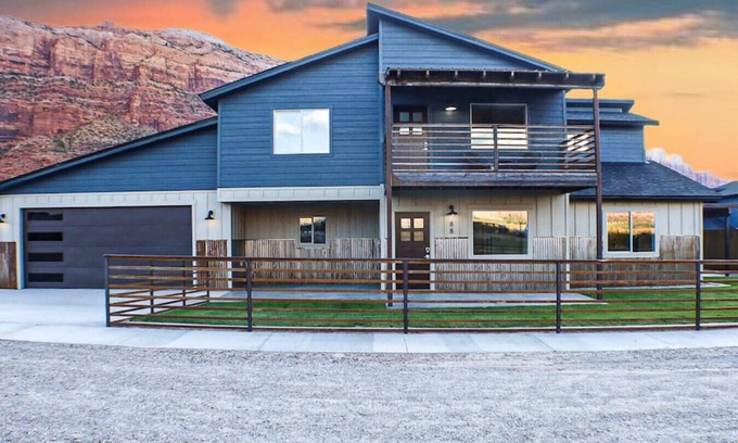 Brand new home, tastefully decorated with enough room for the whole family or group of 10. Plenty of room to gather together in the main floor open floor plan or large family room upstairs. This home also features 3 covered patios, firepit and covered balcony, outdoor shower and private hot tub. You can take in the night sky or mountain and red rock views.
