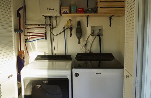 Enjoy eggs from neighboring chickens, hotel linens for posh comfort, a stone fire-pit out back, and a pick-your-own community vegetable garden. This is the perfect getaway for a group trip or family stay.