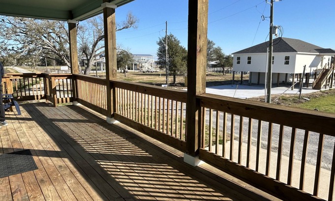 Relax and enjoy the views along the Ship Channel. Spicer’s full-service marina is just around the corner. This condo features 2 bedrooms and 2 baths and is tucked away on one of Hackberry’s quietest streets while being amongst all the frills of being in Sportsman’s Paradise. Come and simply relax on this oversized porch after a day on the water and watch the ships pass. The outdoor area includes covered parking for vehicles and plenty of concreted areas for boats/trailers. Charcoal grill and seating areas are also available for your outdoor dining.