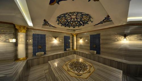 Featuring a garden and a terrace, Calista, Empire, Seven Stars Residence is located in Alanya, a 7-minute walk from Mahmutlar Beach and 0.4 miles from Kestel Beach. Featuring a fitness center, the 5-star hotel has air-conditioned rooms with free WiFi, each with a private bathroom. The hotel features a sauna and room service. All guest rooms in the hotel are equipped with an electric tea pot. Every room includes a flat-screen TV, and some units at Calista, Empire, Seven Stars Residence have a balcony. Speaking English and Turkish, staff will be happy to provide guests with practical information on the area at the reception. Alanya Ataturk Square is 6.4 miles from the accommodation, while Alanya Aquapark is 7.1 miles away. The nearest airport is Gazipaşa-Alanya Airport, 19 miles from Calista, Empire, Seven Stars Residence.