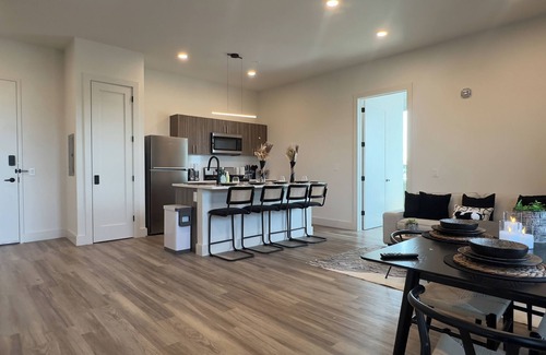 Contemporary furnishing paired with large windows and with a loft style apartment, and pool table it makes the entire home extremely bright during the day, creating a unique ambiance that will stay with you long after your leave. In addition, modern amenities, comfortable furniture, and tastefully picked decorations make for a cozy and warm atmosphere.