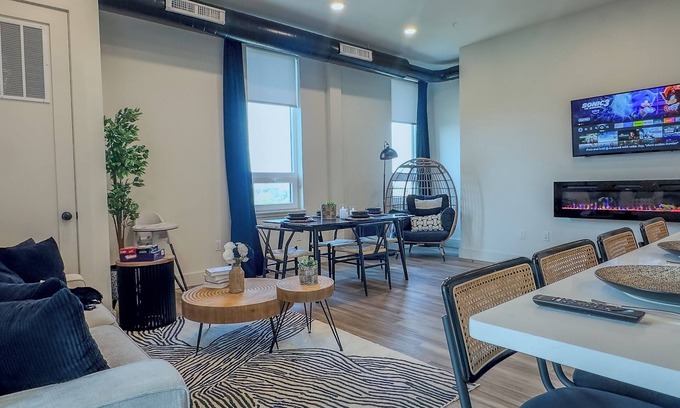 Step into our modern 2BR 2Bath apt for your most convenient stay ever. Arrive from EWR Airport in 9 min. Train is 5 min away. Get to NYC in 30 min. 4 min walk to Prudential Center. Adventure through NJ & NY with ease. Access local shops & eating spots in mins.