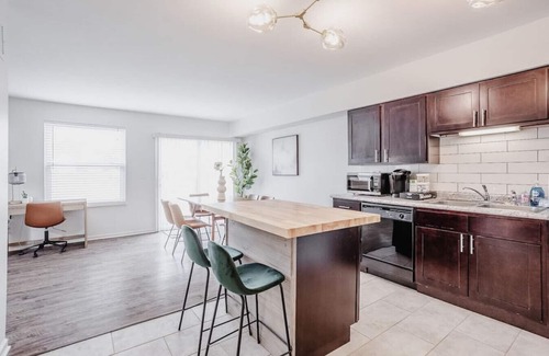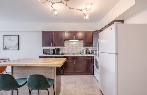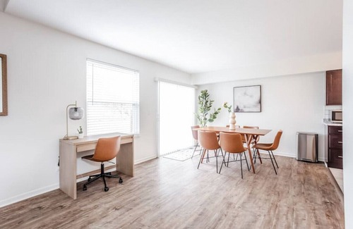 The first floor has an open concept living room, dining room, and kitchen. Work desk on the main floor (with very fast WiFi). Laundry is next to the kitchen.