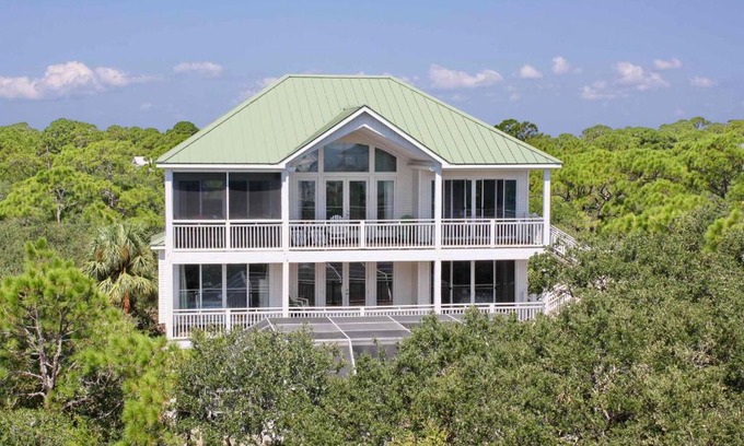 Camellia Cottage is situated in St. George Island. This holiday home features air-conditioned accommodation with free WiFi. The holiday home has 4 bedrooms, a TV with cable channels, an equipped kitchen with a fridge and an oven, a washing machine, and 5 bathrooms with a bath or shower. Towels and bed linen are available in the holiday home. The nearest airport is Tallahassee Regional Airport, 120 km from the holiday home.