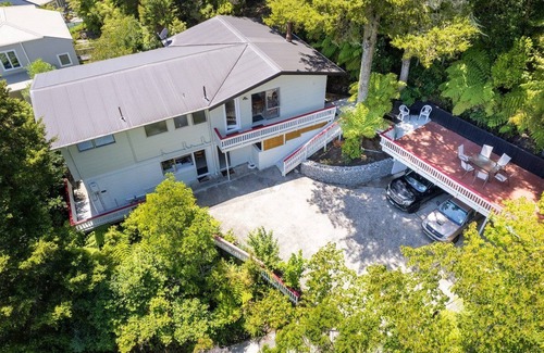 Please note that this property is a separate downstairs unit (upstairs is rented separately).Please be aware that the driveway is very steep, take caution when driving (not boat friendly). Guest carpark is sign posted.As the deck barrier is below 1 metre high, all guests should take care in this area due to the risk of falls.Please note a bond may be charged at certain times of the year. One of our team members will contact you if this is required for your booking.