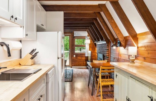 Welcome to Camp Conway! This adorable A-Frame is ideal for up to 4 guests, nestled on a quiet neighborhood street. North Conway, only 10 minutes away offers shopping, the Conway Scenic Railroad, swimming in Diana's Bath's or the Saco River, and skiing! After a long day of adventure relax in the hot tub and make some burgers on the grill!