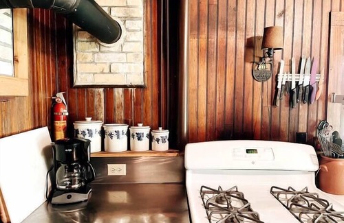 Two bedrooms have one queen bed in each room. Two bedrooms have one full bed in each room. One bedroom has one King bed in it. Two bedrooms have two twin beds each in them. There are two full baths, a full kitchen and living room in the camp.