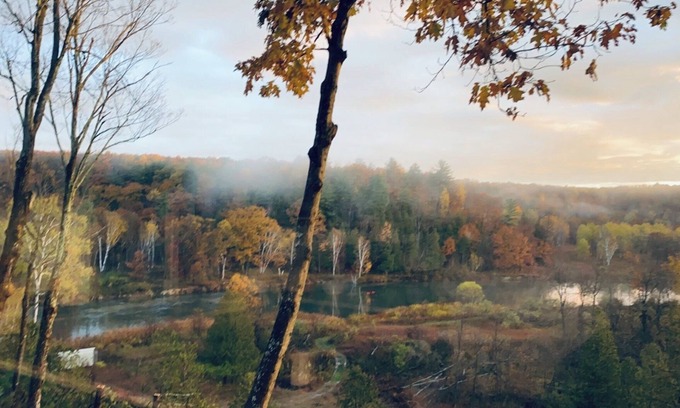 Home is fully off grid run only by solar power. Fish from the banks of the river or bring your boat. Watch wildlife from inside the cabin, outside, or down by the river. Nature at it's finest.