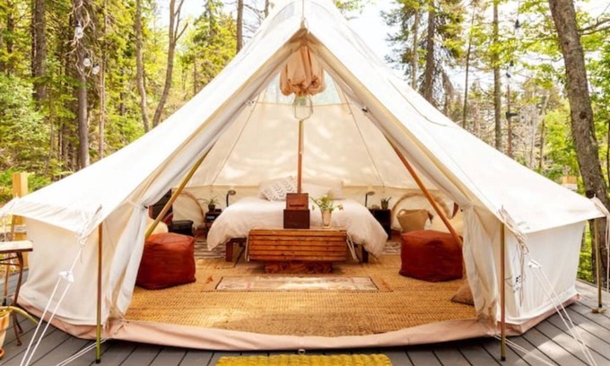 An off the grid, star gazing glamping tent nestled at the edge of a quiet tidal wetlands. *Please note, you are not camping on the ocean's edge.