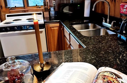 This house was the lifelong dream of the owners' father. Terry Walsh created a model of what his Adirondack getaway would look like when he was in shop class in the 1960's. That model sits in Overlook today. He constructed the majority of Overlook with his own hands using local materials. Necolle helped her father build their little "cabin in the woods" as she was growing up. Their first night in the cabin was in 1992.