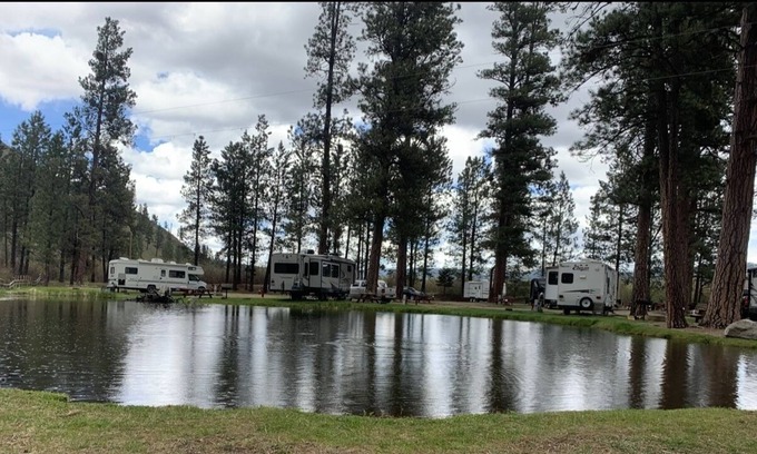 Rv site 12 , is back in , water & electric. We do have a sewer dump on site . This site fits up to 35 foot Rvs . We offer a clean bath house . 2 dogs are allowed per site with a fee . The rate is for 2 people , additional fee for extra guests must be applied. You’ll enjoy your own fire pit & picnic table. We have 24/7 on site management. You’ll be a stones throw away from the Bitterroot River ! We have nostalgic mini golf , a fish feeding pond and a fully stocked general store . You’ll be able to hike , fish , relax and enjoy the scenic mountains !