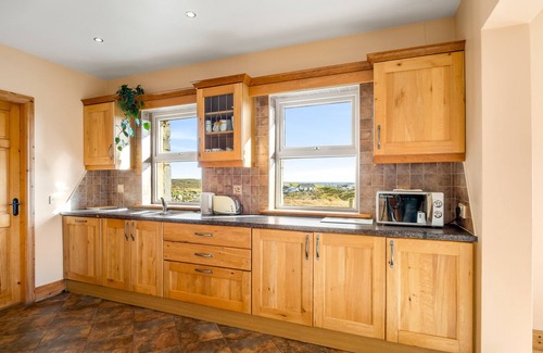 We are delighted to offer this modern 3-bedroom house - beautifully designed, making the most of the stunning views over the Atlantic Ocean. A truly tranquil location, Ideal for families. The house is set off the main road in proximity to beautiful beaches such as Dolan, Dogs Bay, Gurteen and Coral Strand.Leave the hustle and bustle of city life behind you and escape to the tranquil location of Dolan. Newly built, modern, family-friendly property; with stunning views of the Atlantic Ocean. This property is situated ideally between the villages of Roundstone and Ballyconneely and is a 15-minute drive from Clifden town centreCampbells Cottage offers the following:-Very spacious and bright open plan reception room with comfy couches 2 x 2 leather seater & 1 armchair with open fireplace, TV. There is a large dining table which seats 6 with a sliding door leading to a BBQ area. The kitchen is fully equipped with all modern appliances (dishwasher, microwave, electric hob & double oven, large fridge/freezer) and tiled flooring.Master bedroom with king-size bed & ensuite shower room. Wooden flooring and ample natural sunlight).2 further bedrooms with double beds.Family bathroomCampbells Cottage is pet friendly, and offers a highchair, travel cot, hairdryer, Smart TV, outdoor furniture & BBQ.