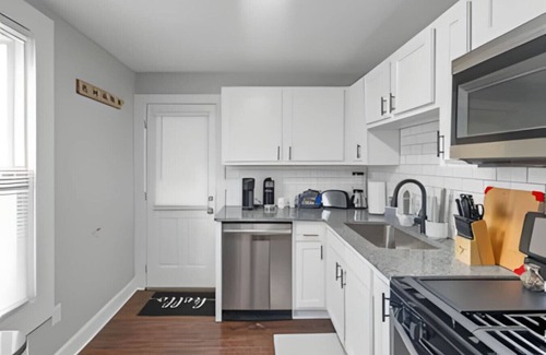 Beyond the bedrooms is the well appointed kitchen and full bathroom. There is an on site laundry room, but you have to go outside and down the celler stairs to get there. Don't worry - it's not hard to access. There is a locked door and you will be provided the key!