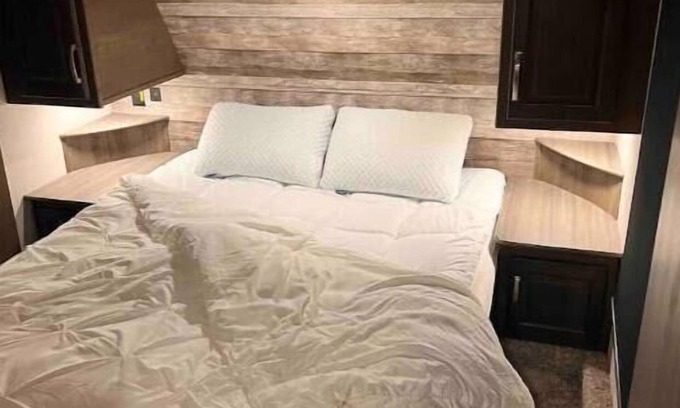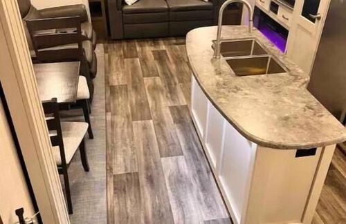 This space is a 2022 Cougar 30RLS. Gorgeous 5th wheel camper. Showroom condition, setup on my property in beautiful Halcyon Bluff. This unit is designed for 2 people to travel the country as full time campers. 1 bedroom, 1 head with stand up shower, the rest is living space.