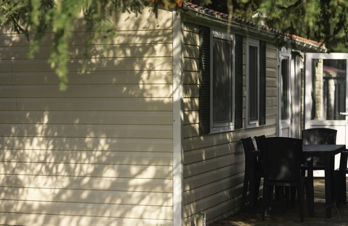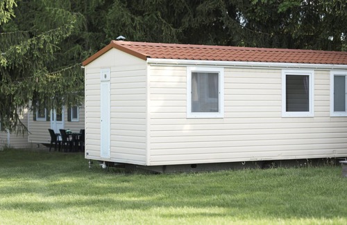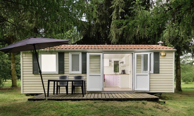 On holiday in the Czech Republic and still that cosy feeling at homeEnjoying peace, comfort and a beautiful view? The Fiji static caravans are located in the most beautiful spots on the campsite, with a view of the impressive Jested.This cosy static caravan is ideal for a family with two adults and two children. There are two bedrooms: one with a comfortable double bed and one with two nice single beds..Also during the pre- and post-season, you'll be wonderfully warm here thanks to the safe electric heating. This way, it's always pleasant, regardless of the season.The Fiji static caravans have their own bathroom and a well-equipped kitchen with a refrigerator, gas stove, kettle and coffee maker. Crockery, cutlery, pans, bowls and cutting boards - everything is available to prepare a delicious meal whenever you feel like it.