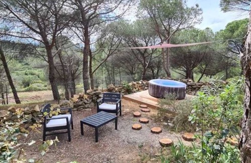 "wild river" (jacuzzi) and its sanitary cabin. Set on a wooded plot,
