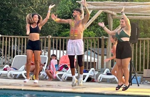 Enjoy a 350m² swimming pool with multiple water jets and a wave slide