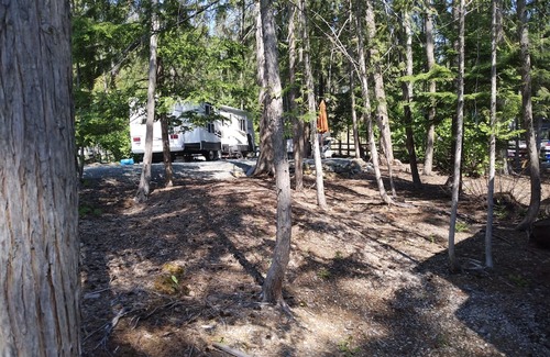 Experience the beauty of camping in picturesque Celista, BC! Nestled among lush trees, this spacious campsite is just 200 feet from a serene, pebbled beach located right across the street. The private 140-foot beach is exclusively available to owners and renters, making it the perfect getaway for families.