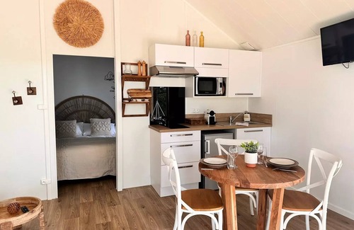 Lodge Suite - Bohème 2 rooms for 2 people Air-conditioned with: Living room Equipped kitchen area 1 bedroom with 1 double bed of 160cm Shower room with WC Covered terrace