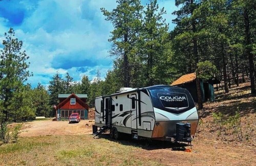 Want to get back into nature where Mule deer and a variety of birds make frequent appearances? Camping in the Pines is just the spot. This RV is fully equipped with electric, hot water, heat/A/C, and all the necessities for a weekend getaway where you can hear nothing but the wind through the pine trees. Want to go see some sites? No problem. Situated about 30 minutes from Canon City, you can go see the Royal Gorge Bridge, hike Tunnel Drive Trail, drive Skyline Drive and explore all Canon City has to offer and lay your head to rest in our RV. Being at 8k feet elevation we experience cooler temperatures during the Summer. Enjoy the day down by the Arkansas River and lounge out in the cool breeze in the pine trees at night. Speaking of night, with little to no light pollution the stars out here are amazing! We're also about an hour away from Westcliffe, known for their dark sky community and impressive Sangre De Christo Mountains.