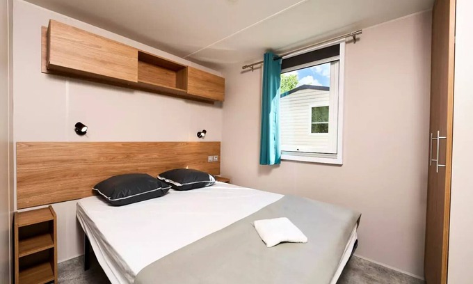 Accommodation: At Camping La Cerise, discover our mobile home Magnolia, a spacious and comfortable accommodation solution for up to 6 people. Surrounded by greenery, this mobile home of 31.8 m2 is the ideal place for relaxing holidays with family or friends!