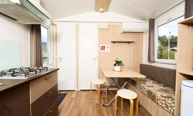 Experience a refined camping experience in the heart of Provencal nature with our 2-bedroom mobile home, perfectly suited to comfortably accommodate up to 4 people. Nestled in a green setting, this accommodation of 22 m2 is an invitation to comfort and relaxation...