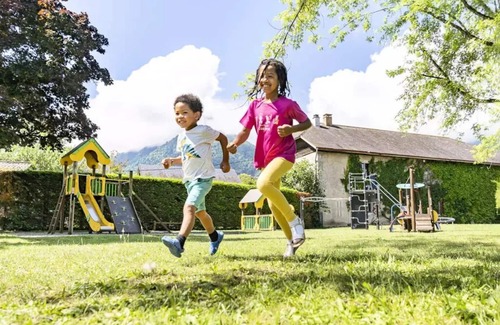 Residence: Come and spend an unforgettable stay with your family at campsite of the Ferme de la Serraz*****. Enjoy an incredible panorama of the mountains, for a holiday or a weekend, 2km from Lake Annecy.5 minutes from the beach and 2 minutes walk from the departures of hiking tours, it is a destination particularly appreciated by nature lovers and large spaces, to discover with family or friends.Enjoy theoutdoor pool accessible and heatedis one of the best assets of the campsite. It is an ideal place to play with your children, spend or simply enjoy the view of the surrounding mountain with feet in the water.Equipmenta paddling poolThe heated outdoor swimming pool is ideal to safely accommodate your young children. In a few centimetres of water, they can cool down and play alone or several.You can enjoy the view of the surrounding mountains fromthe spacious solarium.Many activities will be offered to make your family holiday unforgettable.Daytime:
