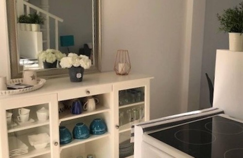 A fully equipped and furnished kitchen area (hob, microwave, washing machine ...)