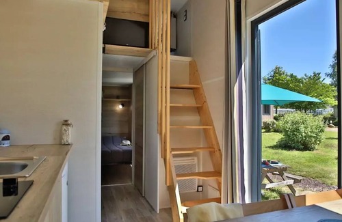 Details: Disabled access Wi-Fi access : free on the entire site Playground for children Children's animation : Mizzy Club - July/August Family animations : free - day and evening - July/August Grocery store : Bread and pastry depot from April to October - to be settled on site Final cleaning fee : optional : Breizh Home : 100€ ; Cabanon: 90€; Chalet : 90€ ; Cottages on stilts: €90; Ecolodge Bali: €70; Elegance: €120; Holiday homes : 120€ ; Lodge: 90€; VIP Lodge: 100€; Taos: €120; Sweet home : 120€ ; Safari tent: 70€, Tiny House : 90€ - to be paid at time of booking hammam : supplement - upon reservation Jacuzzi : supplement - upon reservation Baby Kit : 20€/kit - upon reservation and subject to availability - to be paid at time of booking Laundromat : 6€/washing with laundry - 4€/ drying Bedding : in surcharge - from 15€ to 25€) - to be specified when booking Animation level : 83 Number of stars : 4 Water park : heated outdoor pool, playful paddling pool and slides Car park : 1 seat/location bowling Ping Pong Swimming pool : outdoor heated - multi-track slide - playful paddling pool - solarium - open from June to September - free access from 10am to 7pm (8pm in high season) Indoor swimming pool : heated - open from April to late October - free access from 10am to 7pm (8pm in high season) Possibility of bike rental : supplement - upon reservation Restaurant : - bar - snack : (open to school holidays and extended weekends) Sauna : supplement - upon reservation Breakfast service : 8.50€/breakfast - to be paid on site Tourist tax (surcharge) : 0.50/person over 18 Television : included in accommodation except trailers, safari tents and mobile homes elegance Environmental display Pets Allowed : 8€/night - compulsory vaccination book - 1 animal/housing - Category 1 and 2 dogs prohibited - prohibition to leave the animal alone in the accommodation - to be paid at the time of booking Coffee maker Number of bedrooms : 2 Number of double bed : 1 Number of pieces : 3 Number of toilets : 1 Number of bathroom : 1 Cooking plate Fridge Surface (m²) : 20 Television Dishes and cutlery